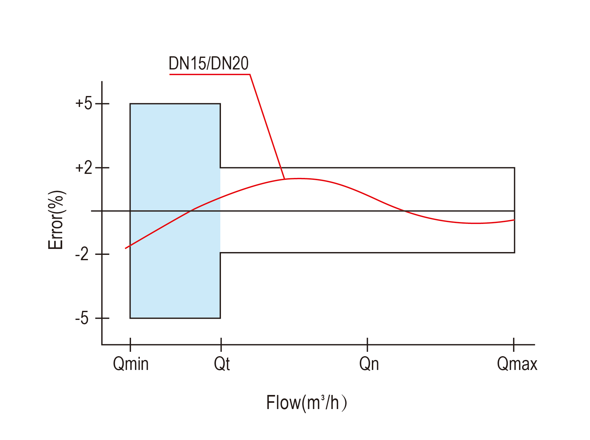 At high zone is ±2% from transitional flow rate (qt) to overload flow rate (qs)